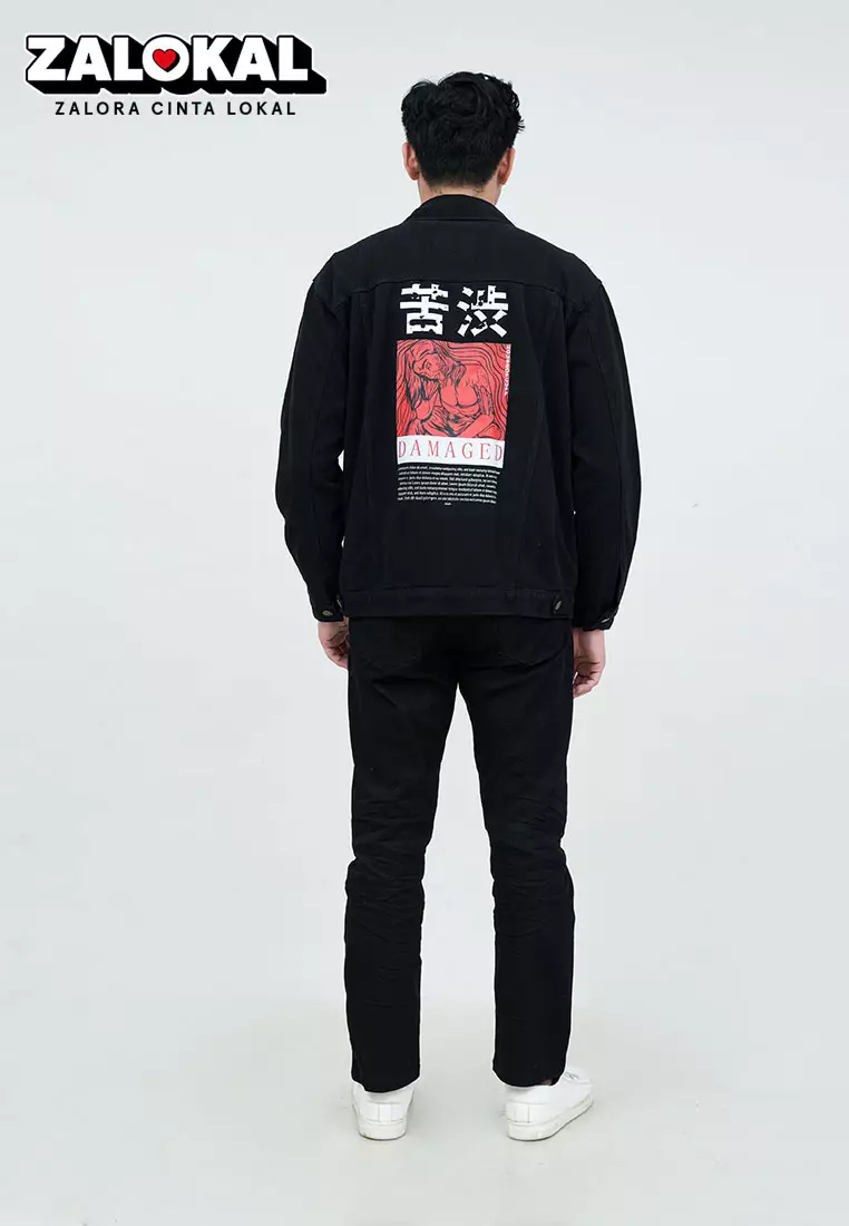 Houseofcuff Jaket Jeans Denim Hitam Tebal Pria Unisex Damaged
