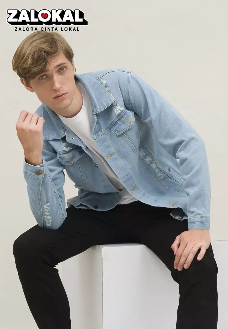 House of CuffHouseofcuff Jaket Jeans Pria Polos Tebal Dilan Denim Biru Pudar Ripped400000.00299000.00