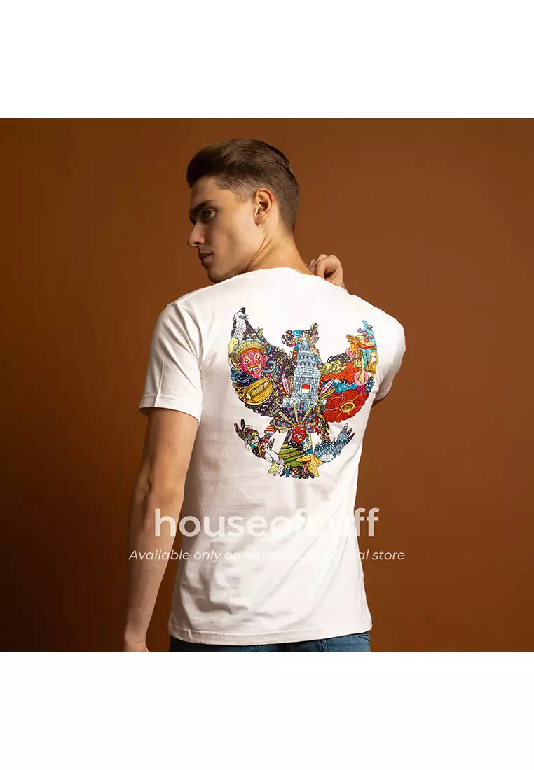 Houseofcuff Kaos Lengan Pendek Katun Kombed 30s Garuda Batik Putih