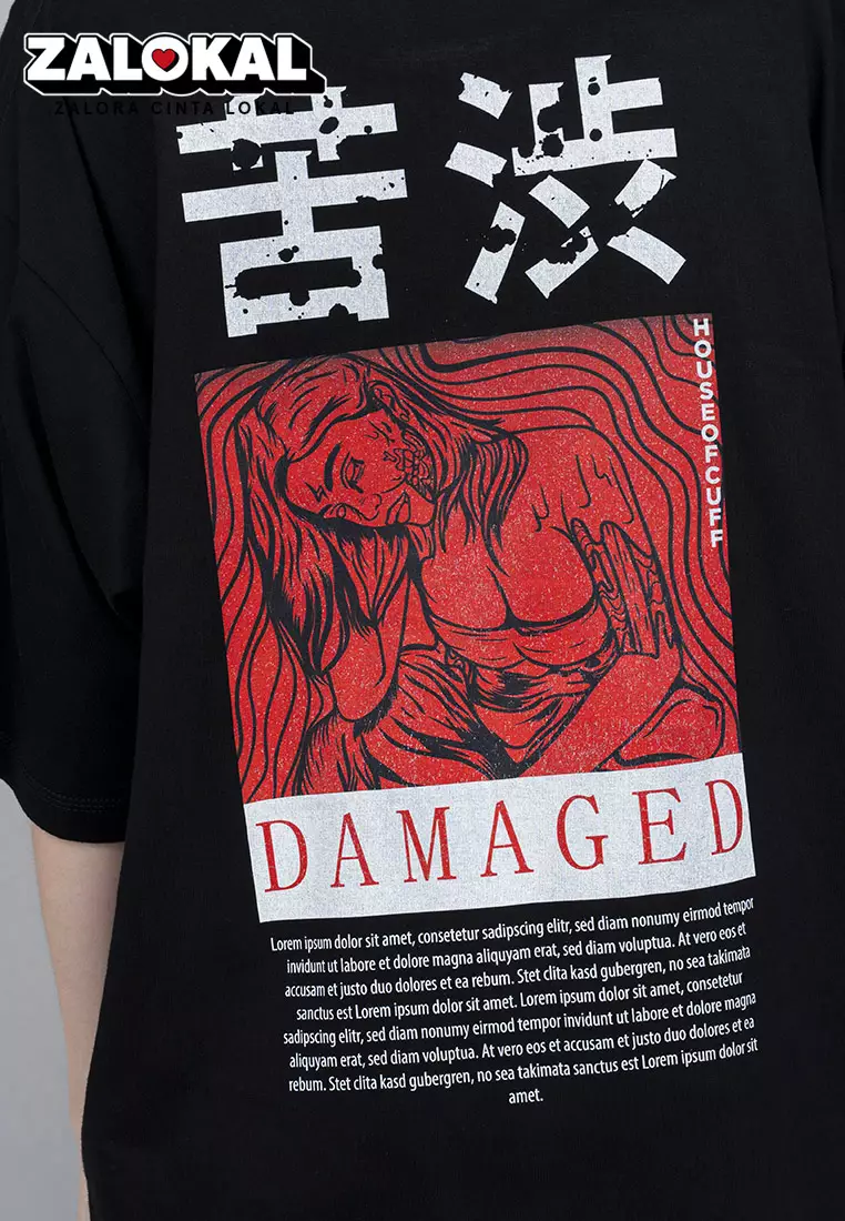 House of CuffHouseofcuff Kaos Oversized T-shirt Wanita Unisex Tebal Hitam Damaged170000.00139000.00