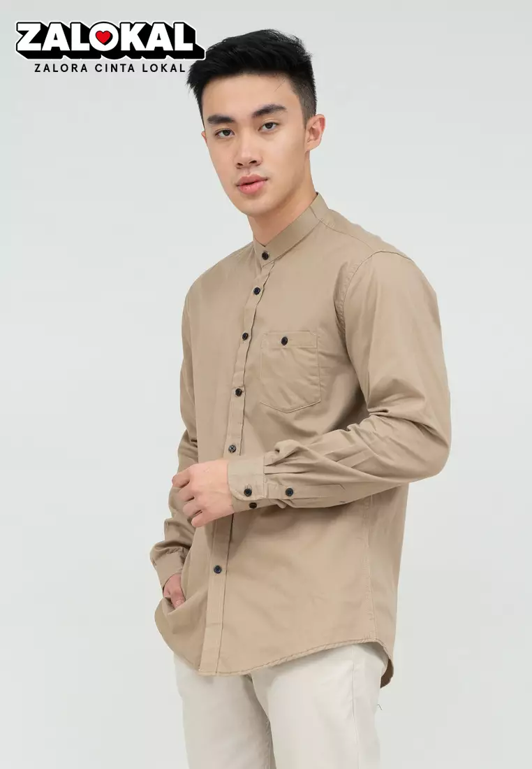 Houseofcuff kemeja Koko Lengan Panjang Pria Cream