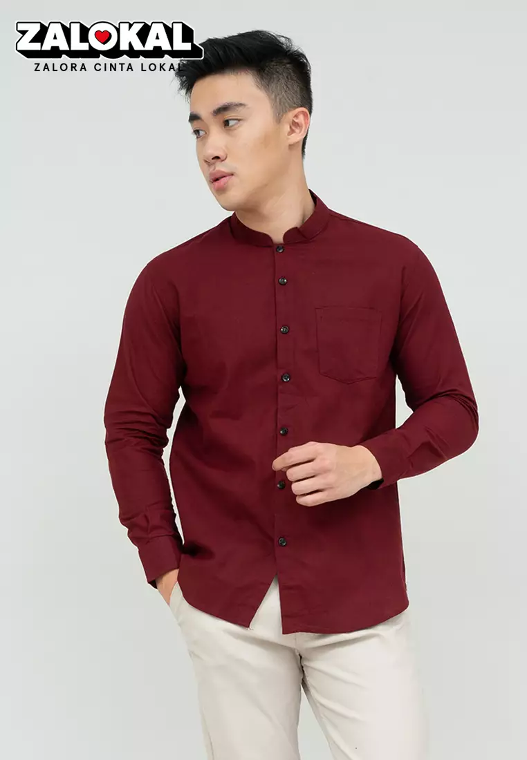 House of CuffHouseofcuff kemeja Koko Lengan Panjang Pria Maroon250000.00150000.00