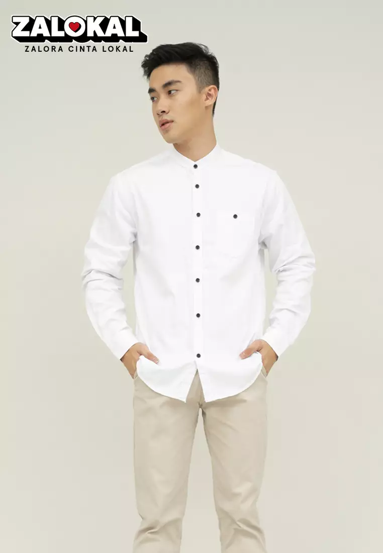 Houseofcuff kemeja Koko Lengan Panjang Pria Putih