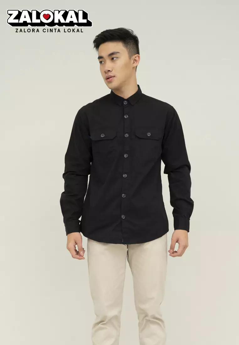 Houseofcuff Kemeja Lengan Panjang Double Pocket Hitam