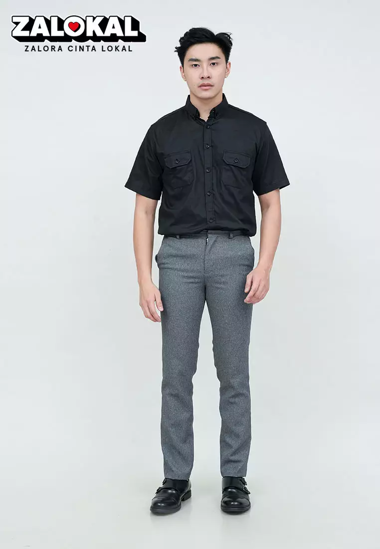 House of CuffHouseofcuff Kemeja Lengan Pendek Pria Slim Fit Double Pocket Hitam275000.00200000.00
