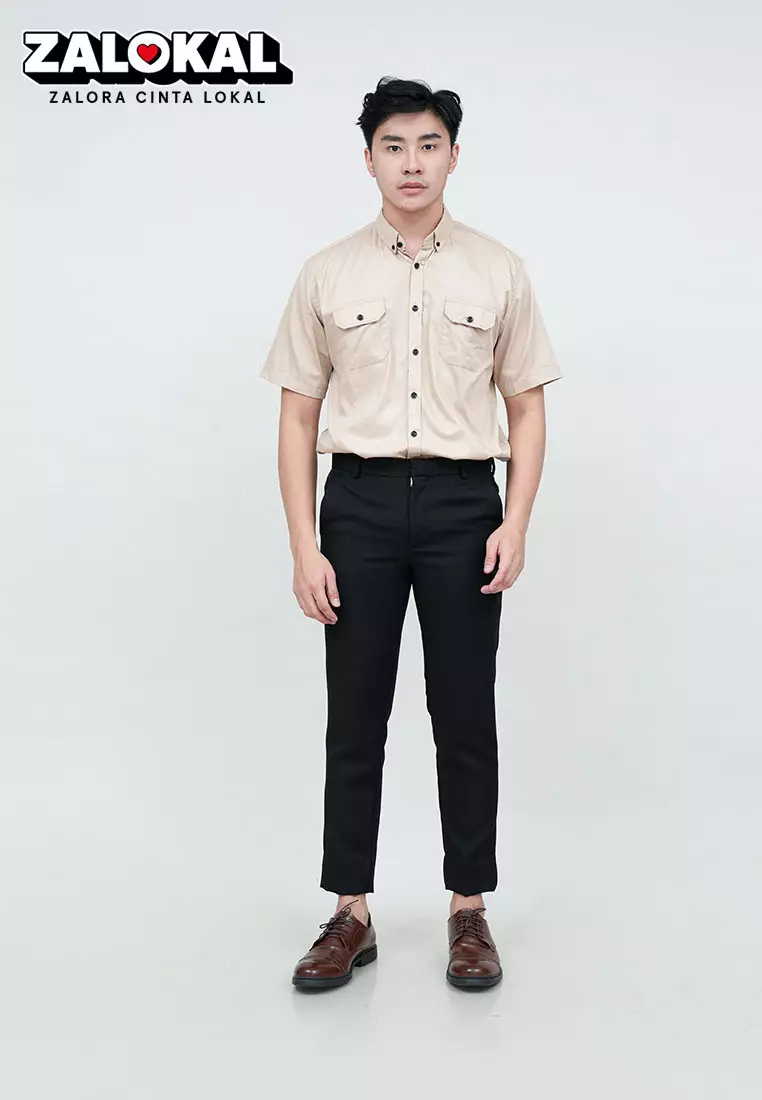 Houseofcuff Kemeja Lengan Pendek Pria Slim Fit Double Pocket Krem