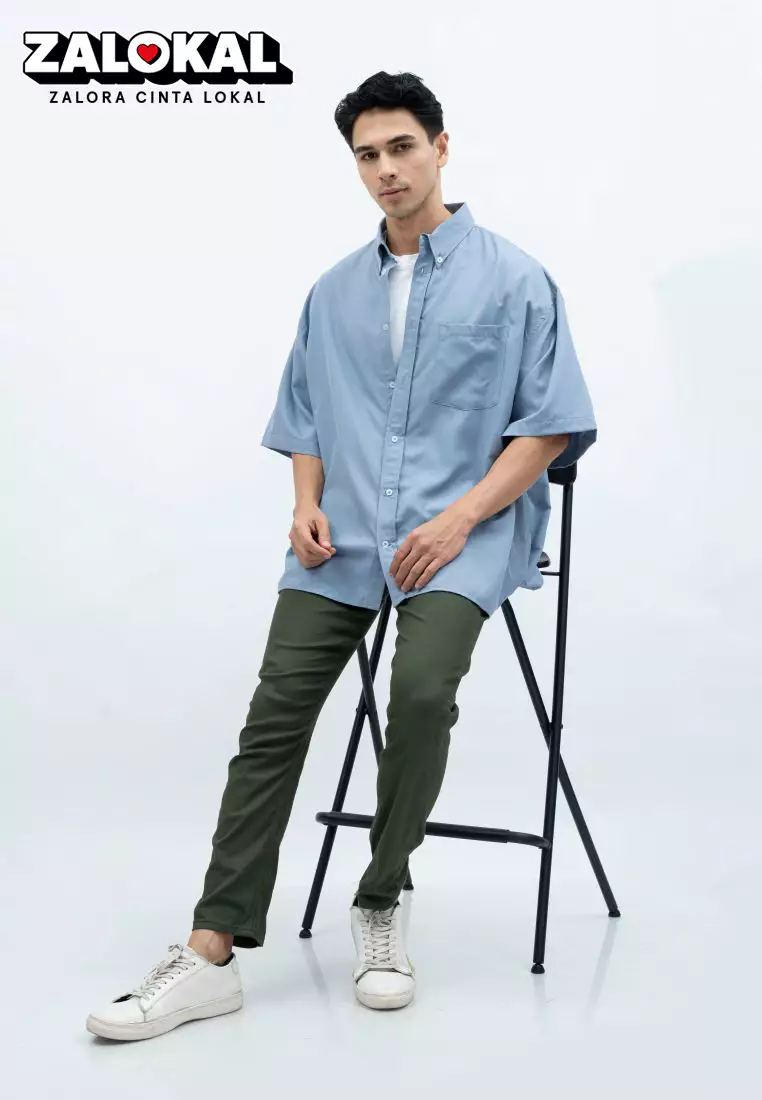 House of CuffHouseofcuff Kemeja Oversize Jumbo Lengan Pendek Pria Unisex Abu Abu300000.00200000.00