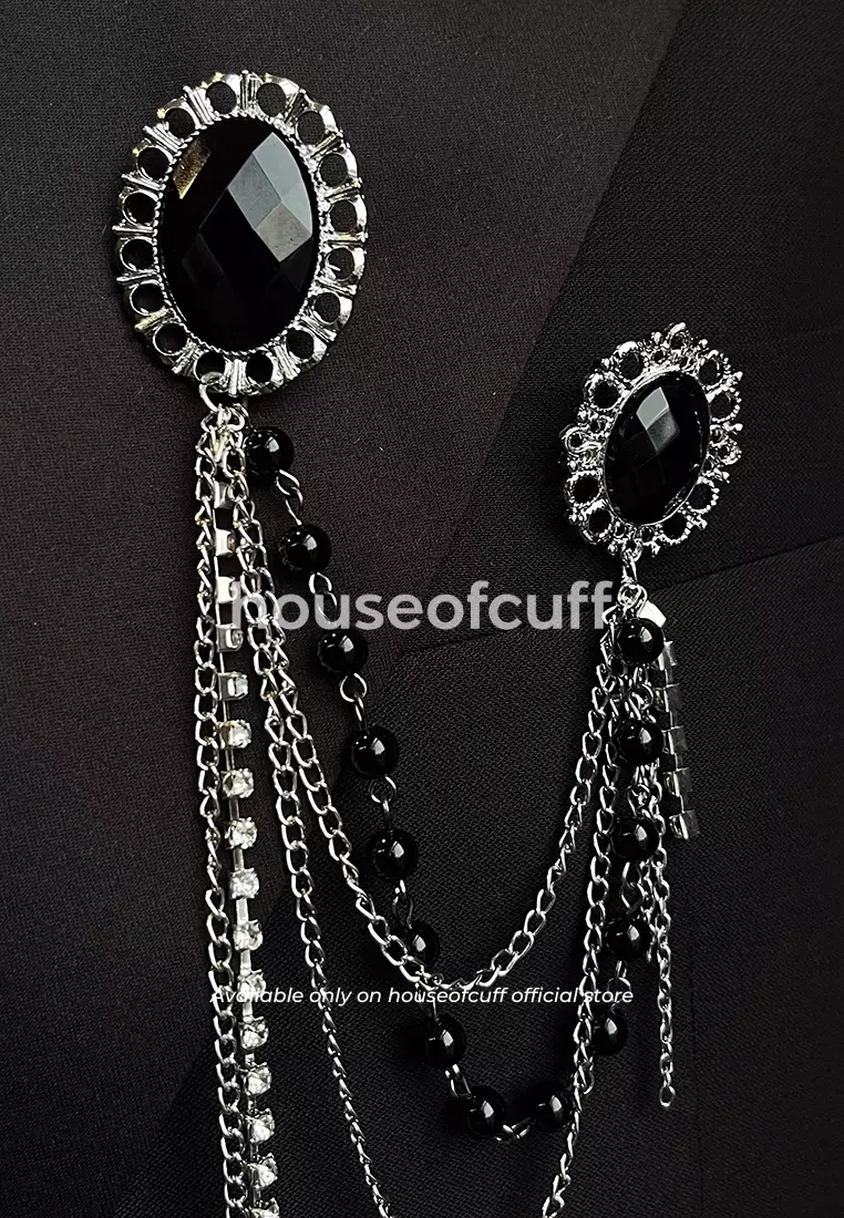 House of Cuffhouseofcuff lapel pin brooch rantai jas pria silver black stone199000.00