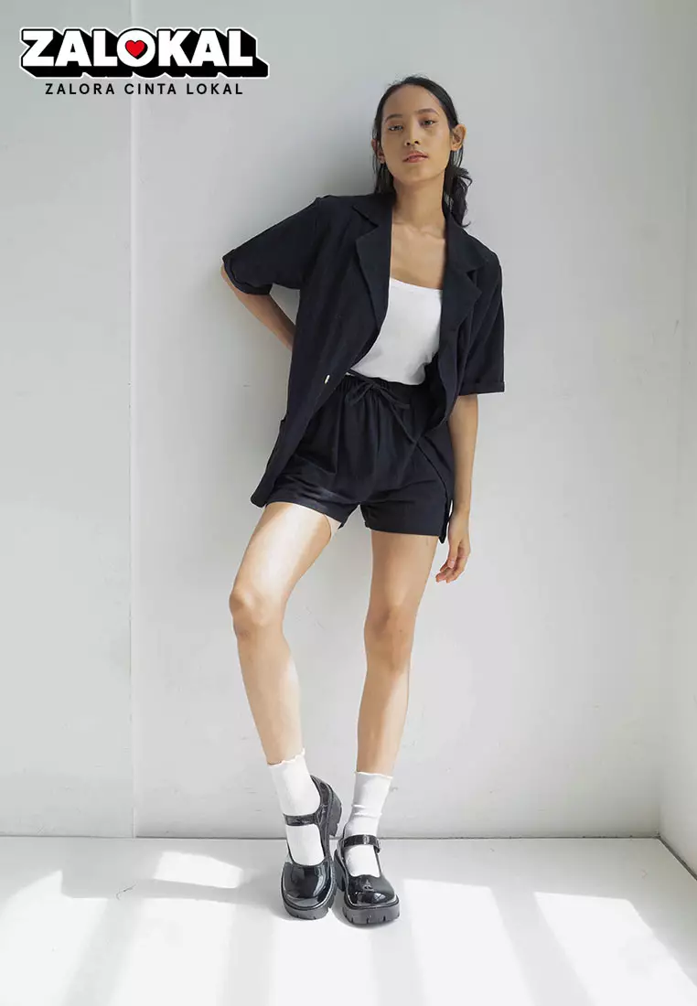Houseofcuff Meadow Set in Black Setelan Blazer & Celana Pendek Linen