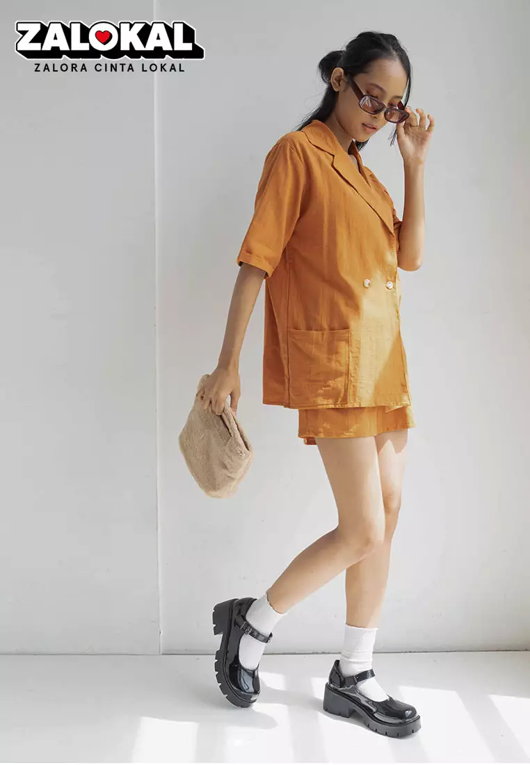 Houseofcuff Meadow Set in Bronze Setelan Blazer & Celana Pendek Linen