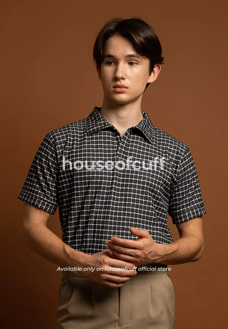 House of CuffHouseofcuff Polo Shirt Knit Rajut Kaos Kerah Lengan Pendek Square Pattern Hitam290000.00155000.00