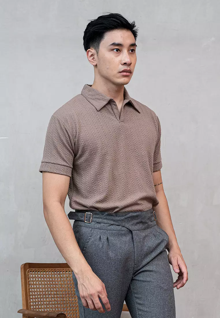 House of CuffHouseofcuff Polo Shirt Rajut Stretch Lengan Pendek Pria Coklat Susu290000.00150000.00
