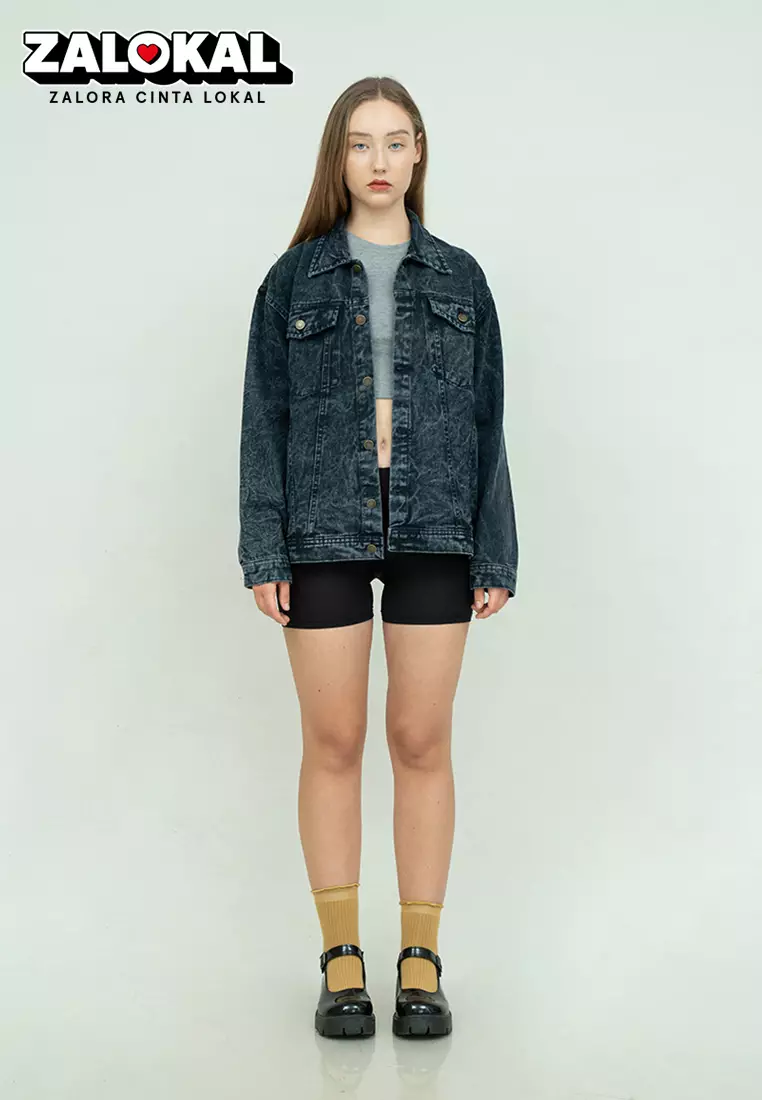 House of CuffJaket Jeans Wanita Polos Tebal Dilan Jaket Denim Hitam Pudar Unisex389000.00