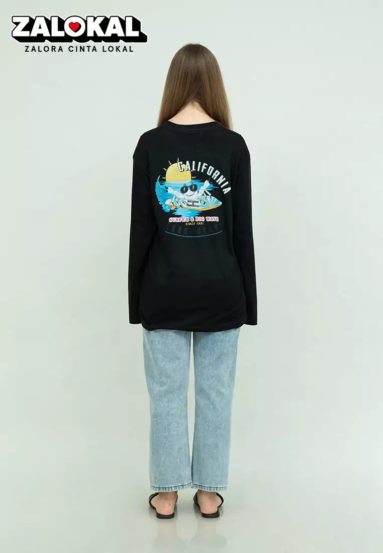 Kaos cotton combed lengan panjang wanita hitam houseofcuff California