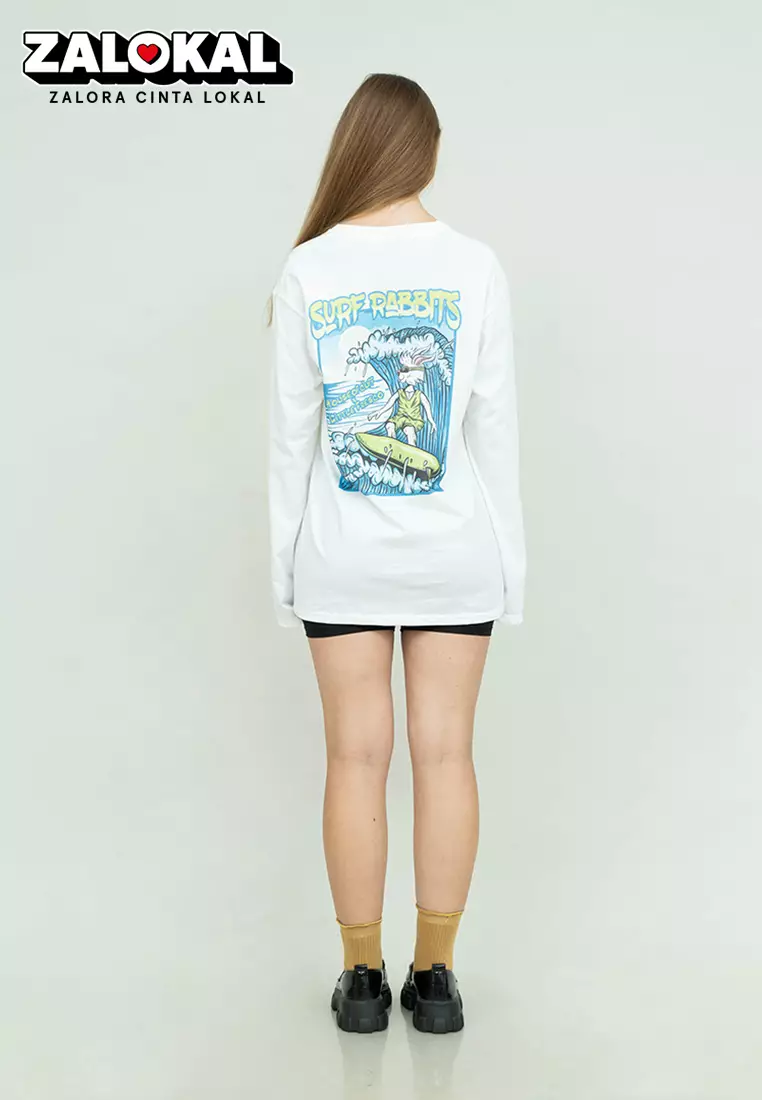 Kaos cotton combed lengan panjang wanita putih houseofcuff surf rabbit