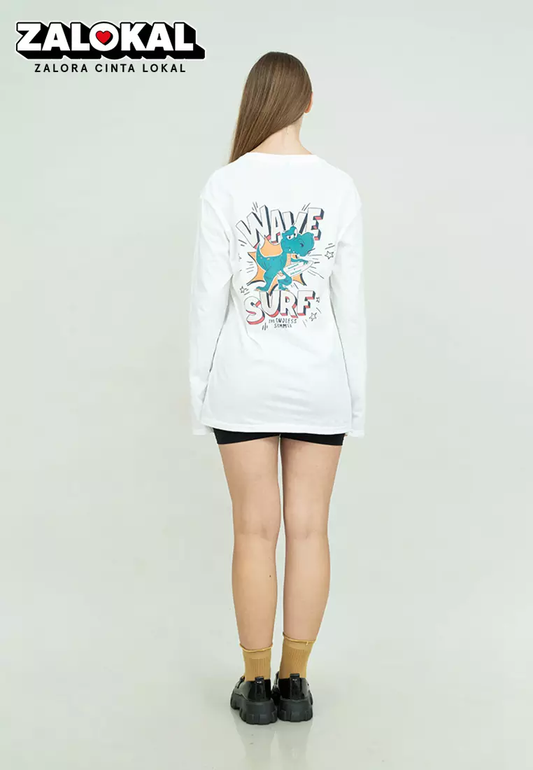 Kaos cotton combed lengan panjang wanita putih houseofcuff wave surf