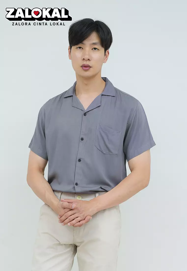 Kemeja bowling shirt pria lengan pendek grey houseofcuff