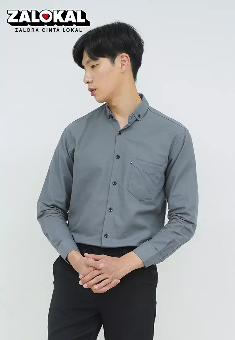 Kemeja lengan panjang pria formal slim fit grey houseofcuff