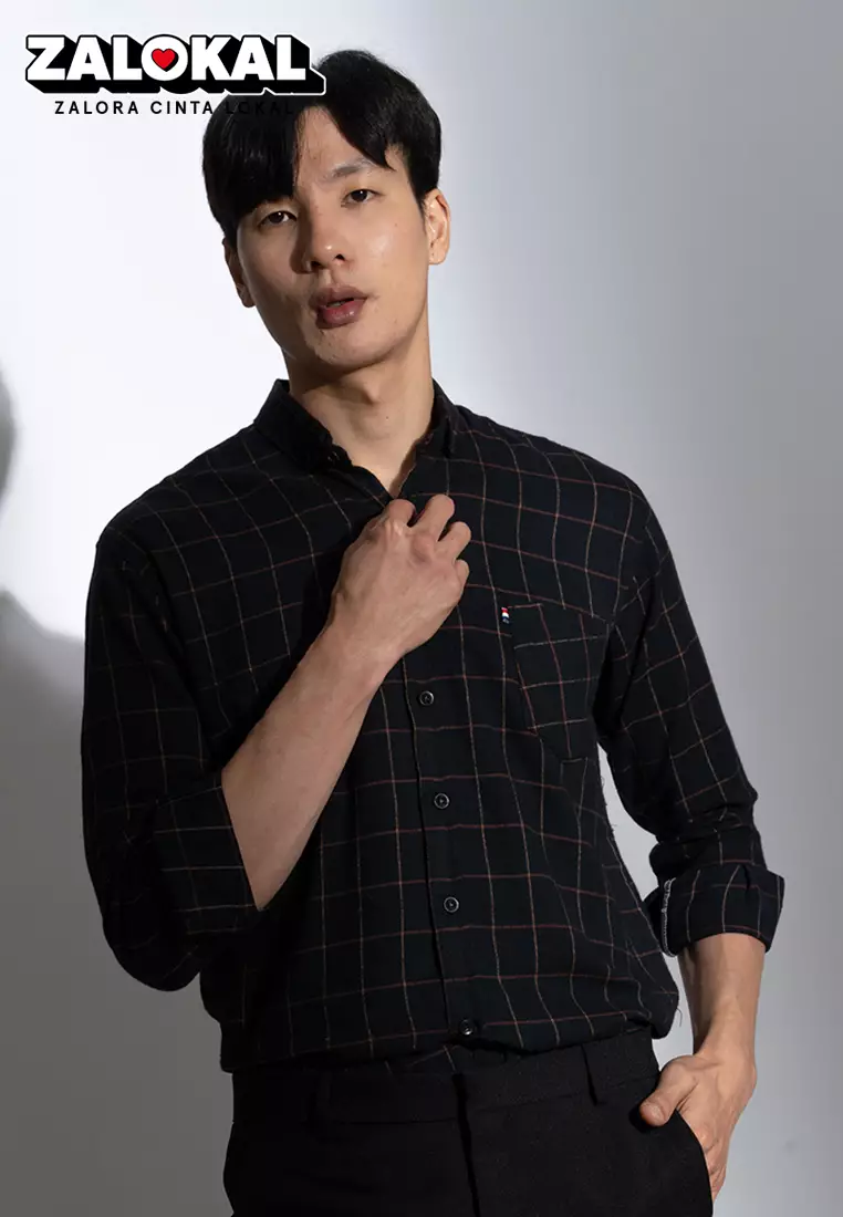 House of CuffKemeja panjang pria formal slim fit hitam kotak cokelat houseofcuff250000.00150000.00