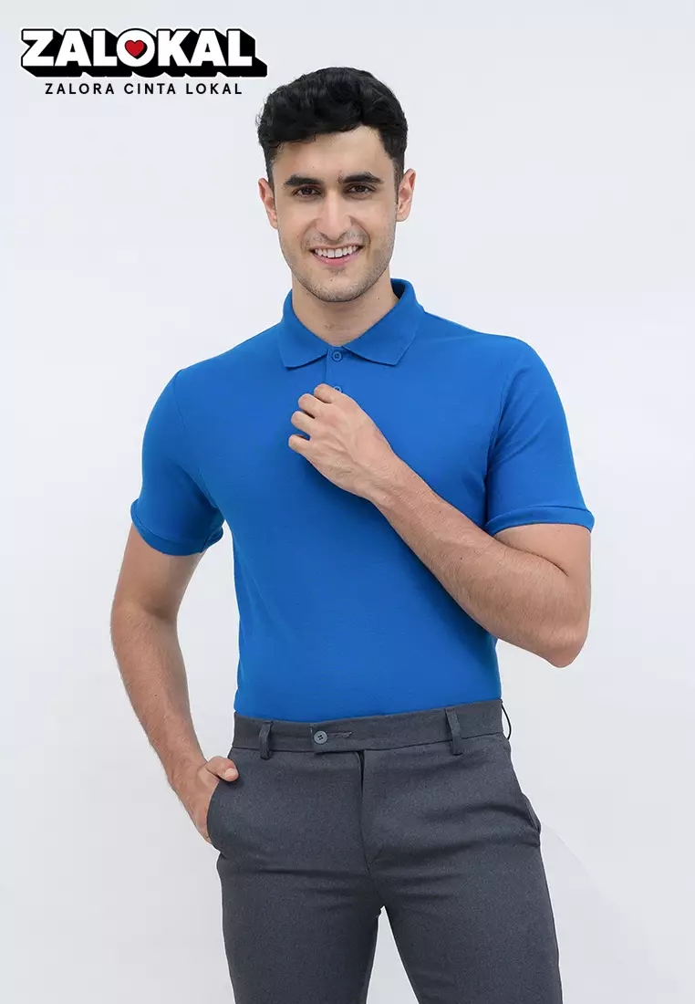 polo shirt baju kaos kerah polo slim houseofcuff biru