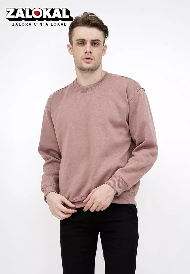 sweater basic lengan panjang baju sweater tebal dusty pink