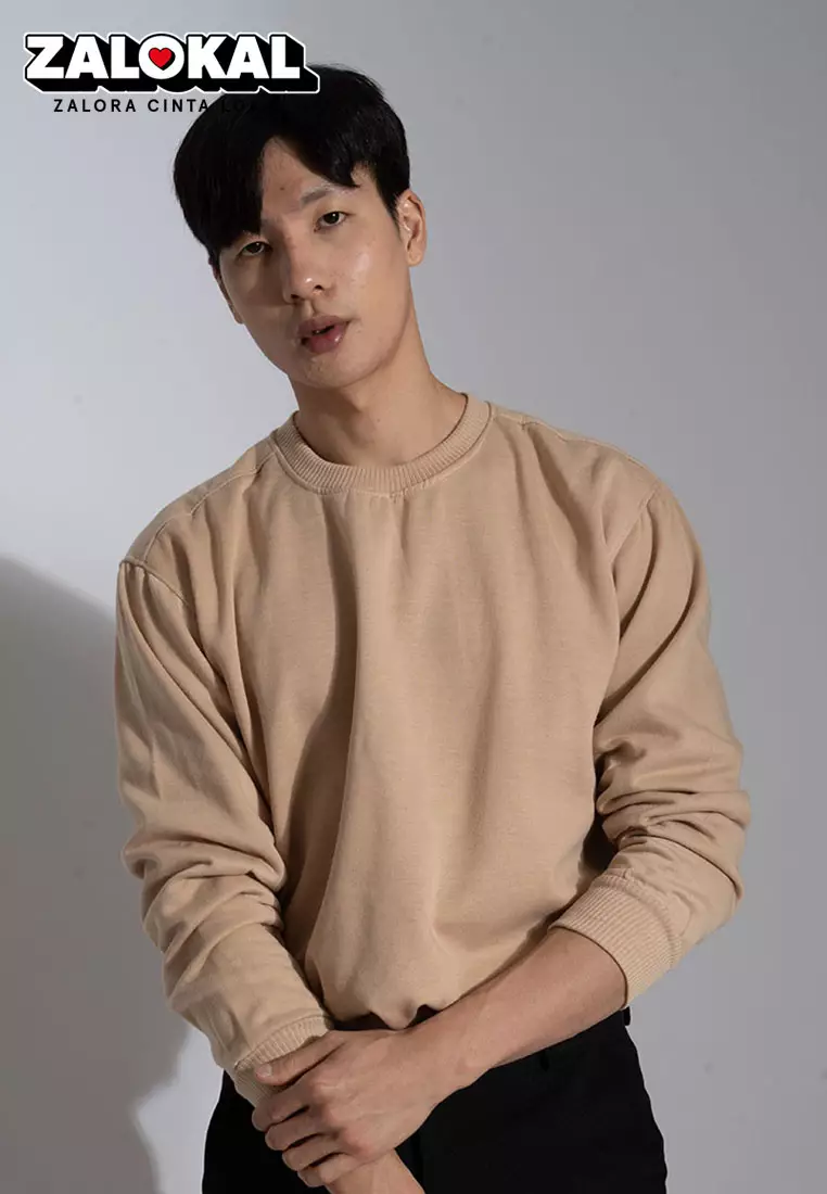 sweater basic lengan panjang baju sweater tebal krim