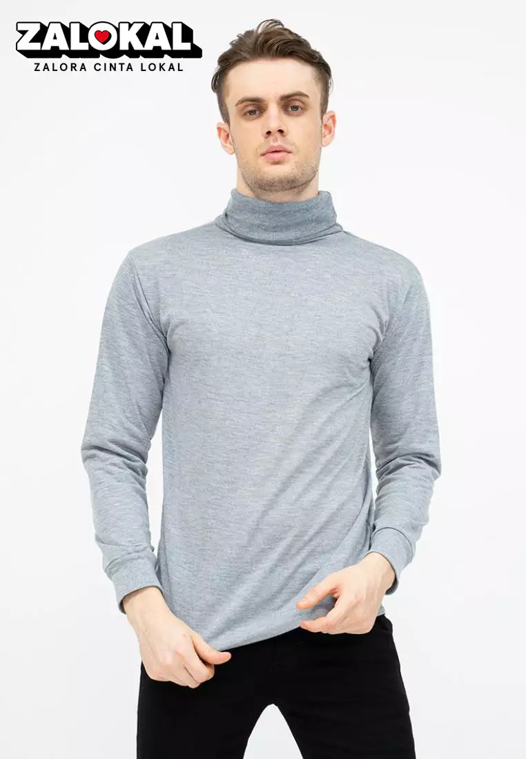 Turtle Neck pria lengan panjang abu muda kaos kerah tinggi slim fit houseofcuff