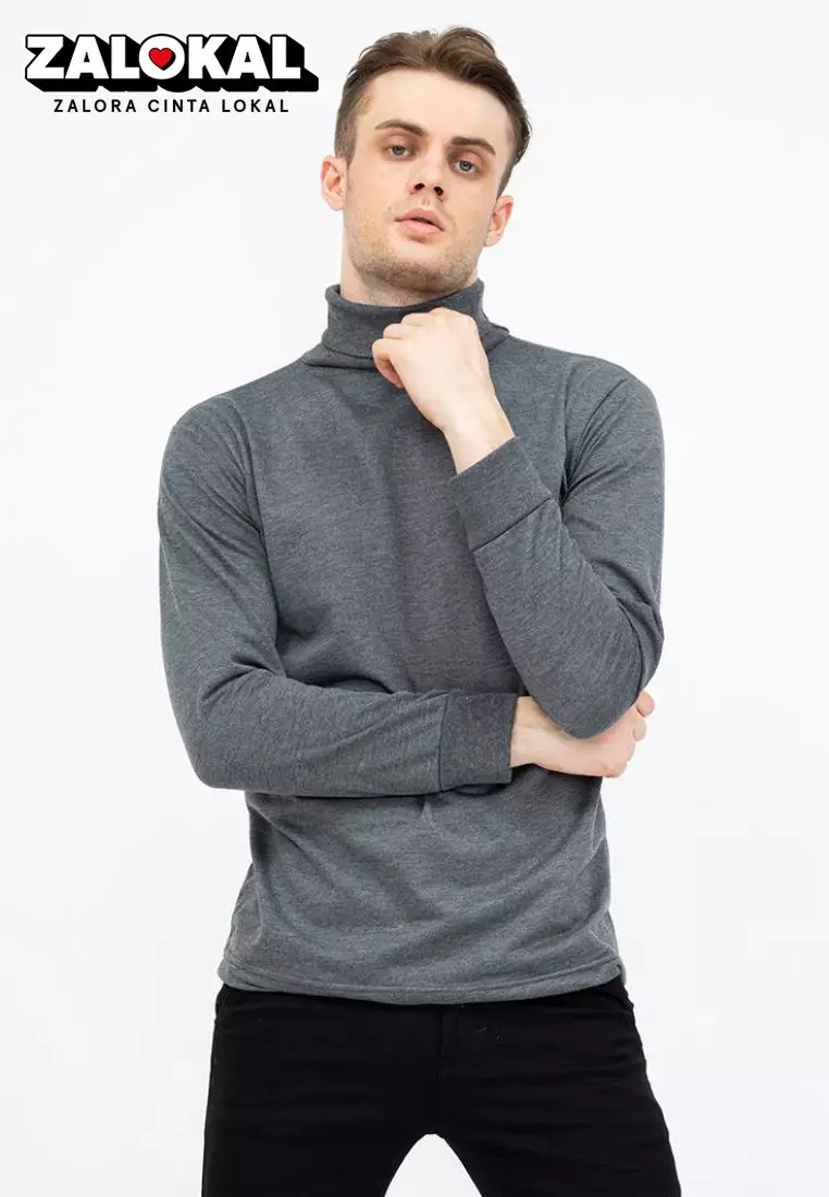 Turtle Neck pria lengan panjang abu tua kaos kerah tinggi slim fit houseofcuff