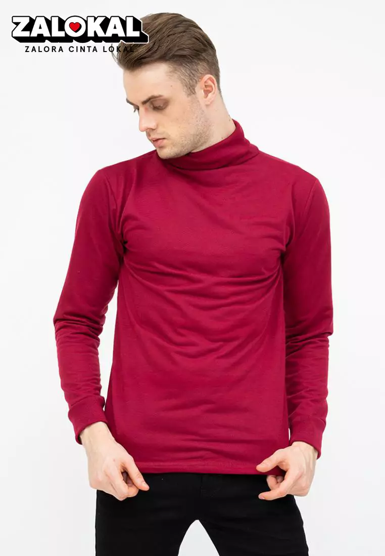 Turtle Neck pria lengan panjang marun kaos kerah tinggi slim fit houseofcuff