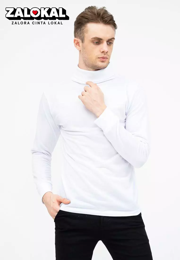 Turtle Neck pria lengan panjang putih kaos kerah tinggi slim fit houseofcuff