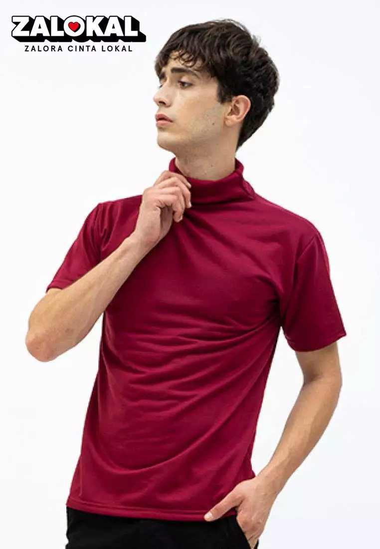 Turtle neck shirt kerah tinggi lengan pendek Maroon kaos polos houseofcuff