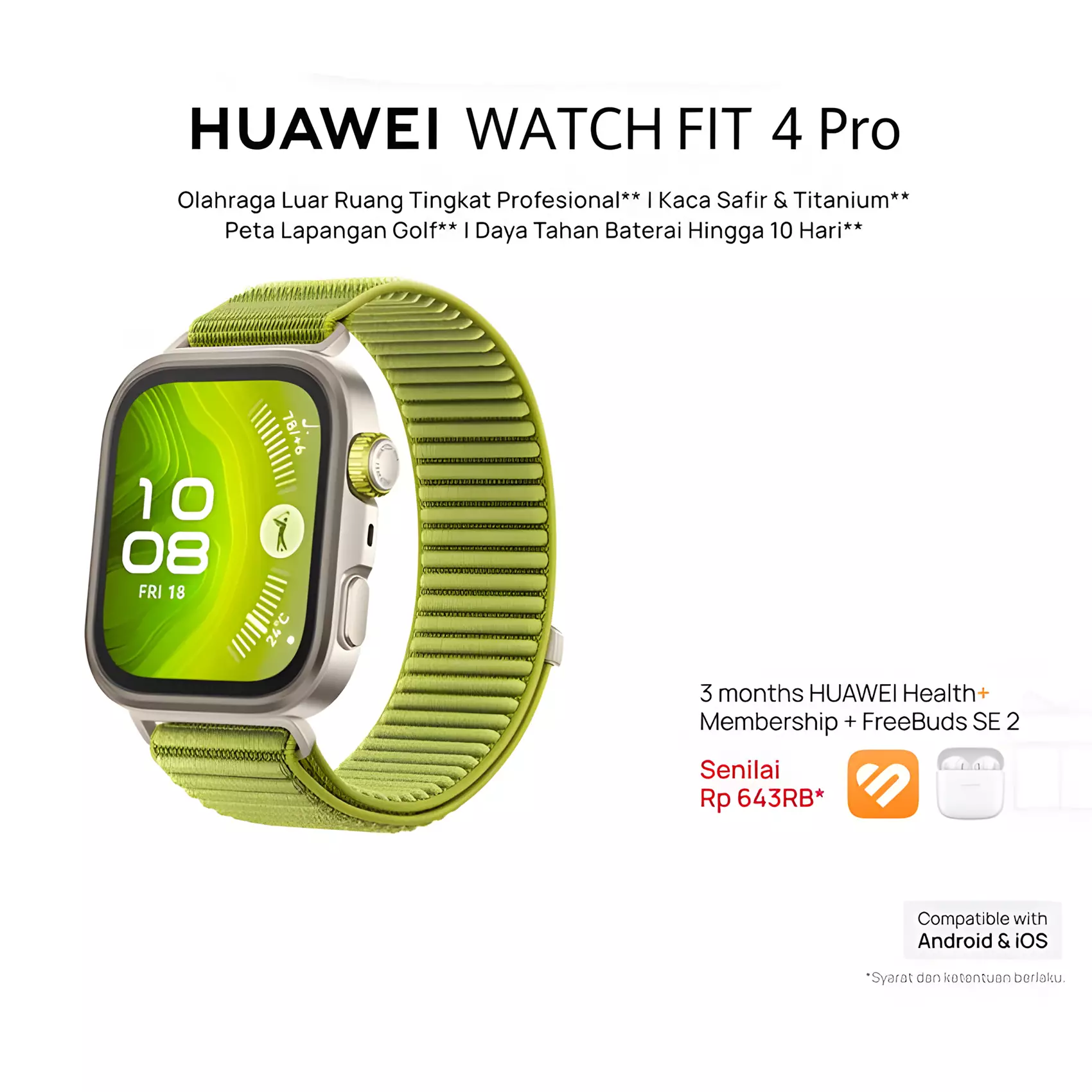 HUAWEI WATCH FIT 4 Pro | Sapphire Glass & Titanium | Pro-Level Outdoor Sports | ECG | 10-Day Battery Life* - Green