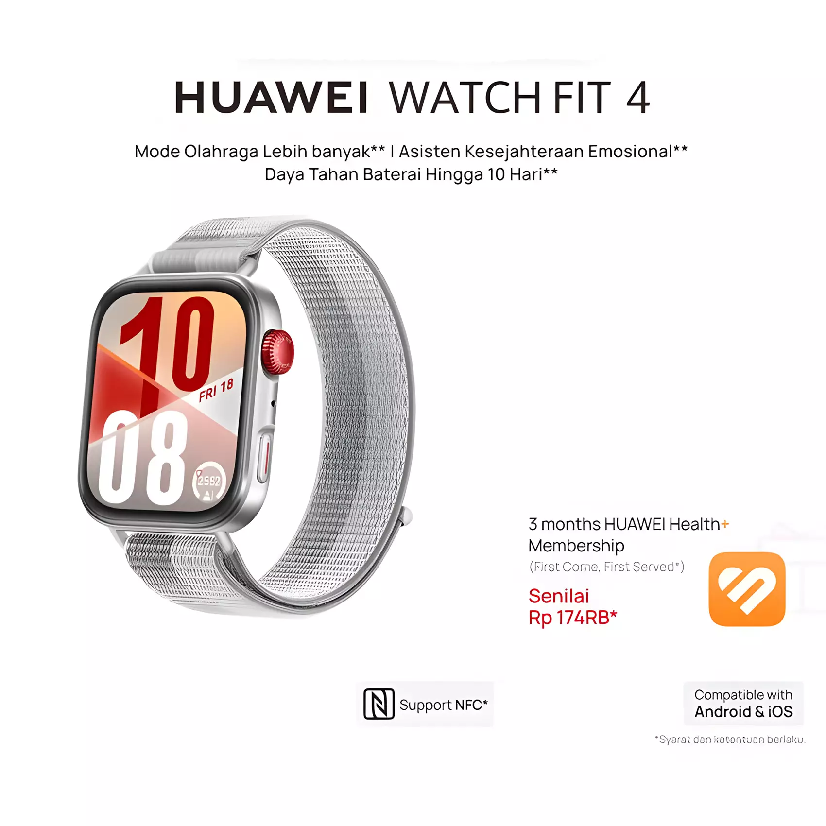 HUAWEI WATCH FIT 4 Series | Stylish Design | GPS | 10-Day Battery Life* | Sports Tracking | Health Management - Nylon Grey (NFC)
