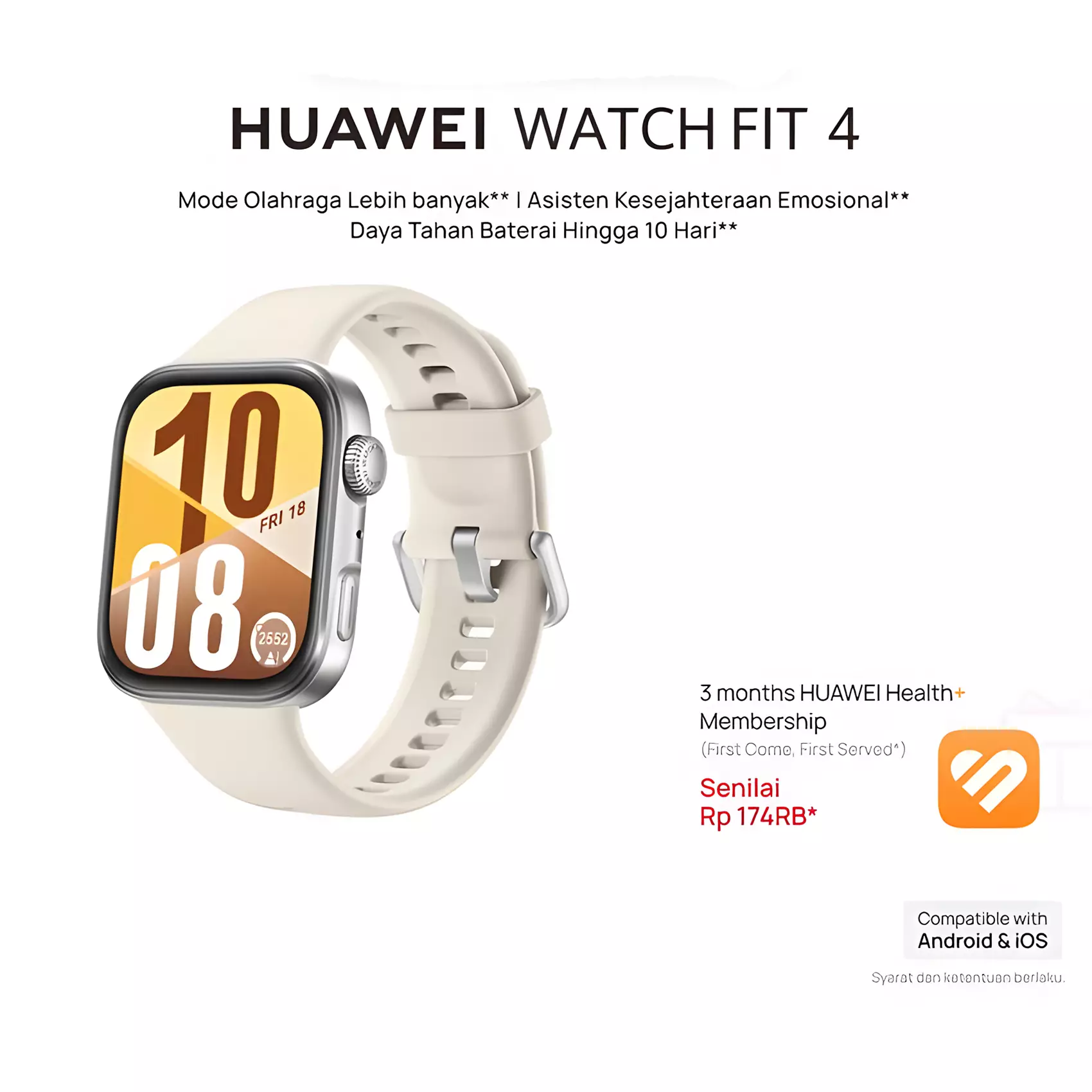 HUAWEI WATCH FIT 4 Series | Stylish Design | GPS | 10-Day Battery Life* | Sports Tracking | Health Management - White