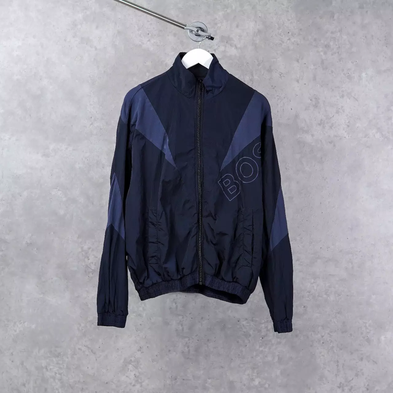 Jaket HUGO BOSS ZELON MULTI GRAPHIC GREY NAVY ZIP TRACK JACKET 100% ORIGINAL