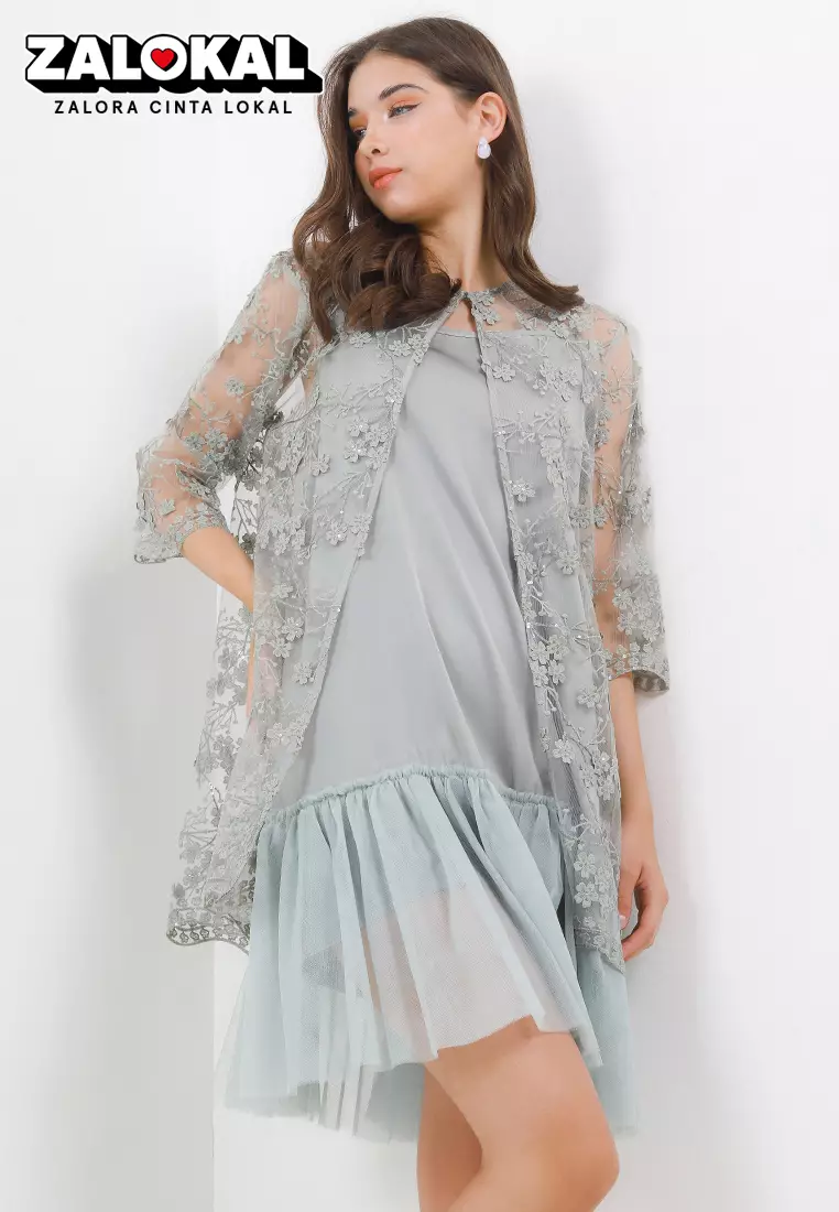 Icons3/4 Sleeves Sequined Emb Mesh Outer W/ Tutu Hem Separate Cami Dress745000.00372500.00