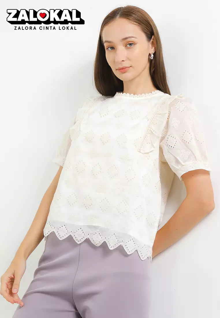 S/S Side Flap Emb Blouse