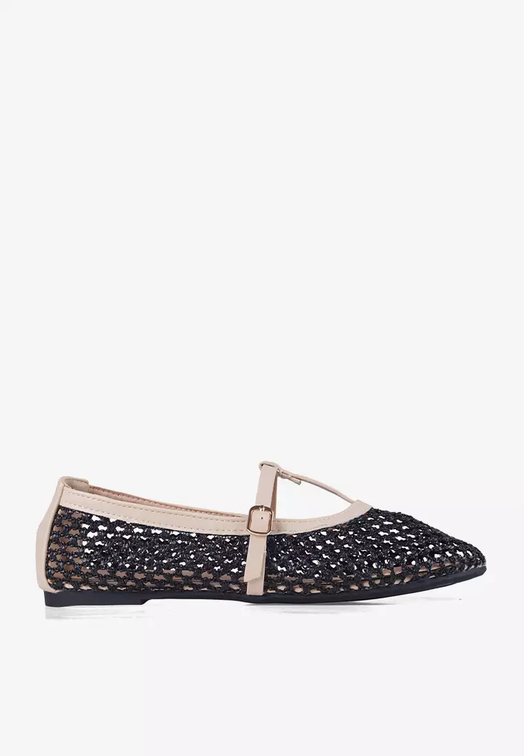 Aria Woven Mary Jane Flatshoes Summer Slip On in Black