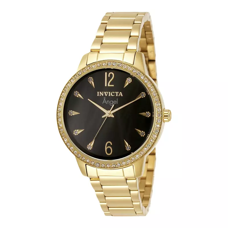 Jam Tangan Wanita INVICTA Angel 31368 Black Dial Gold Stainless Steel Strap