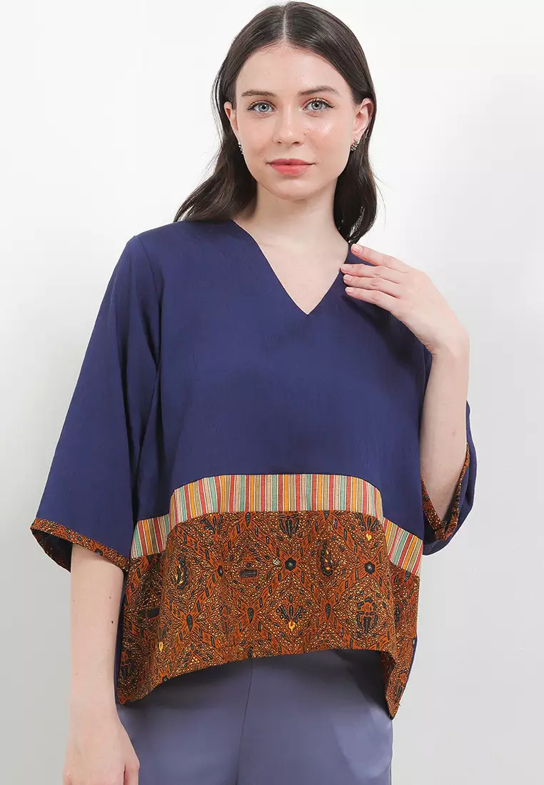 Bahan kain katun kringkel kombinasi batik cap dan lurik dengan panjang lengan 3/4