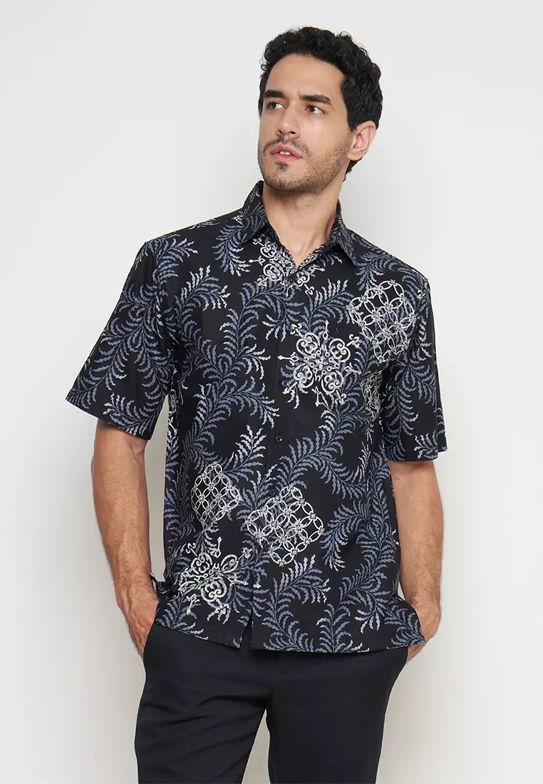 Regfit Hiranya Black Kemeja Batik Pria Lengan Pendek