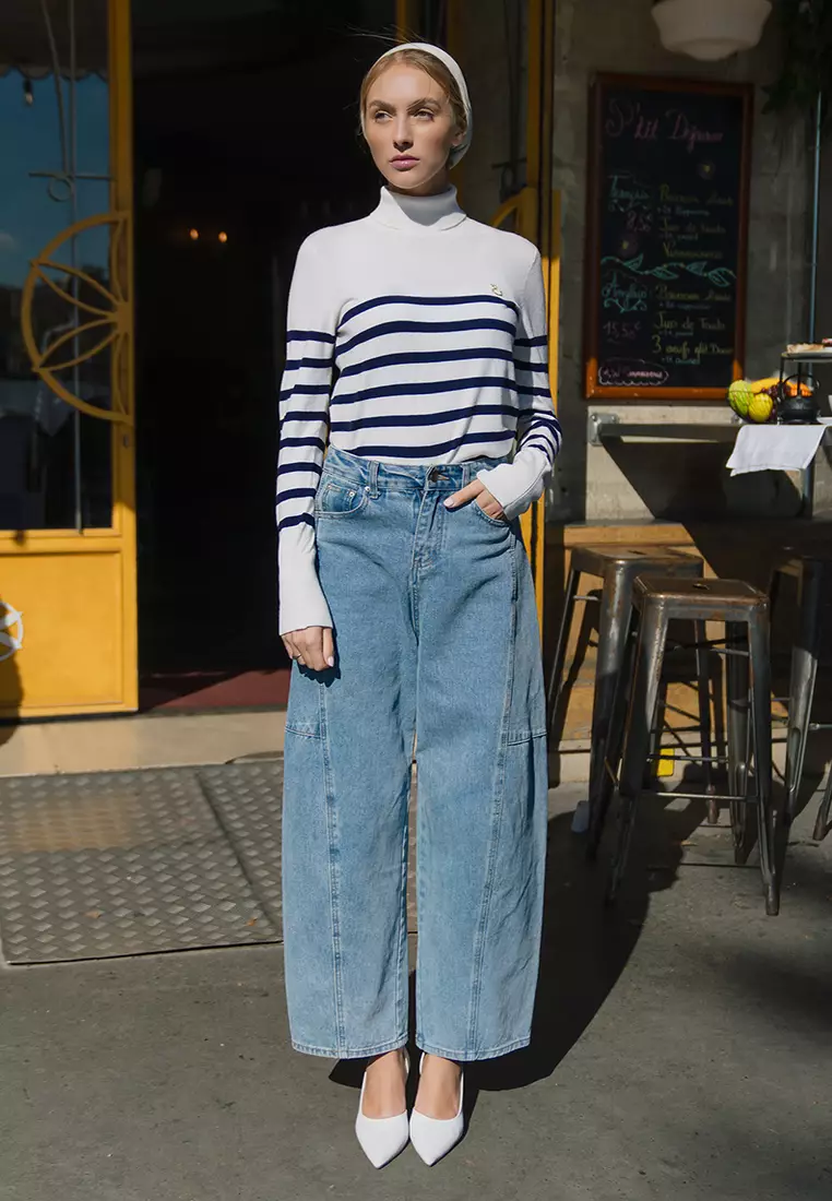 JENNA & KAIAJenna and Kaia - Nafa Turtleneck Stripe Pangeant Blue - Kaos Turtleneck Wanita329000.00