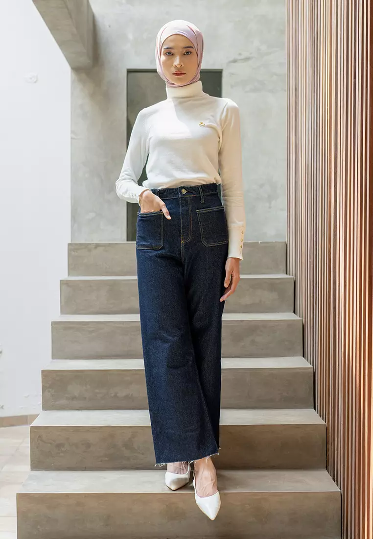 Jenna & Kaia - Kaos Turtleneck Wanita - Nafa Turtle Neck Coconut Milk