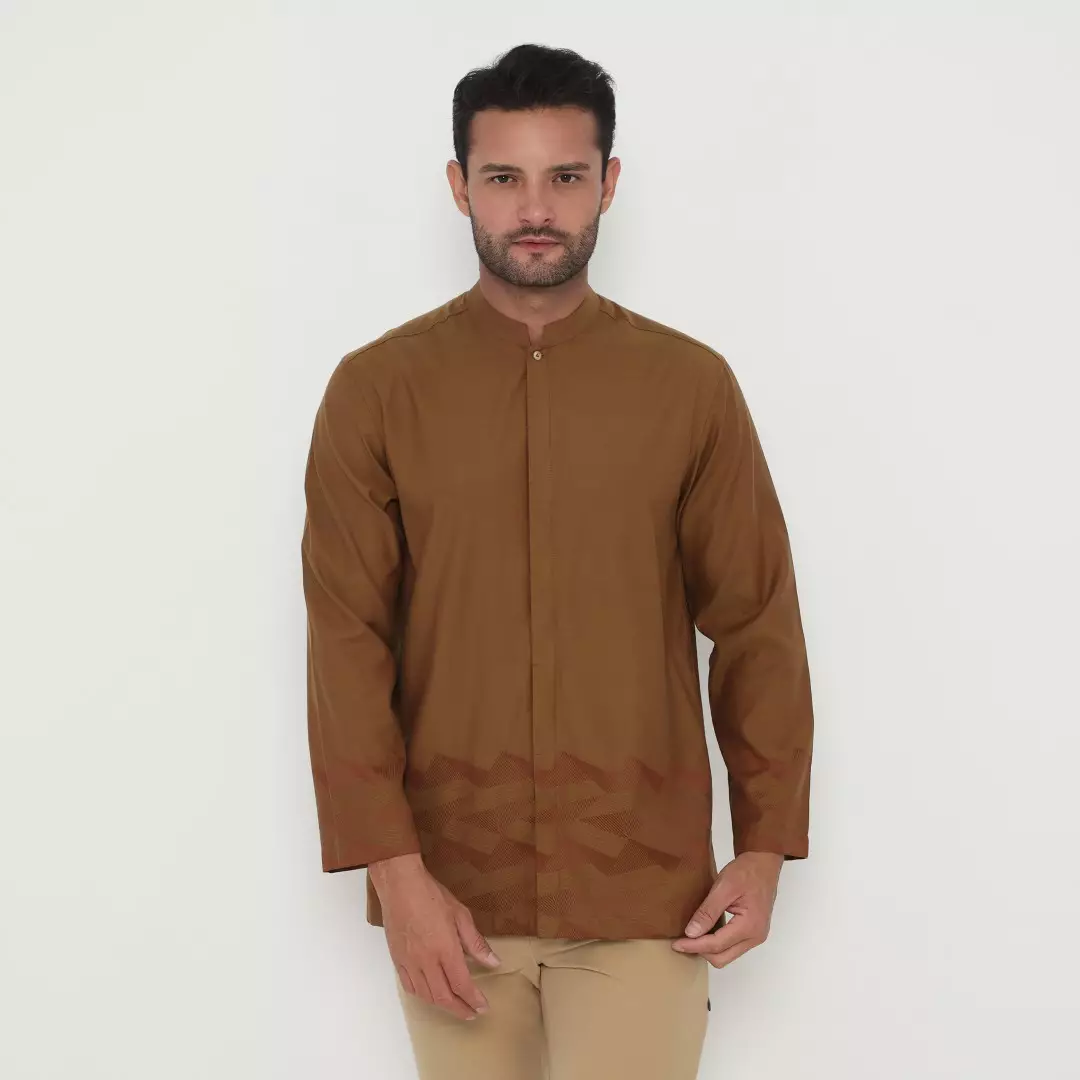 Jobb Owais Baju Koko Pria Lengan Panjang Regular Fit Coklat Warna Brown
