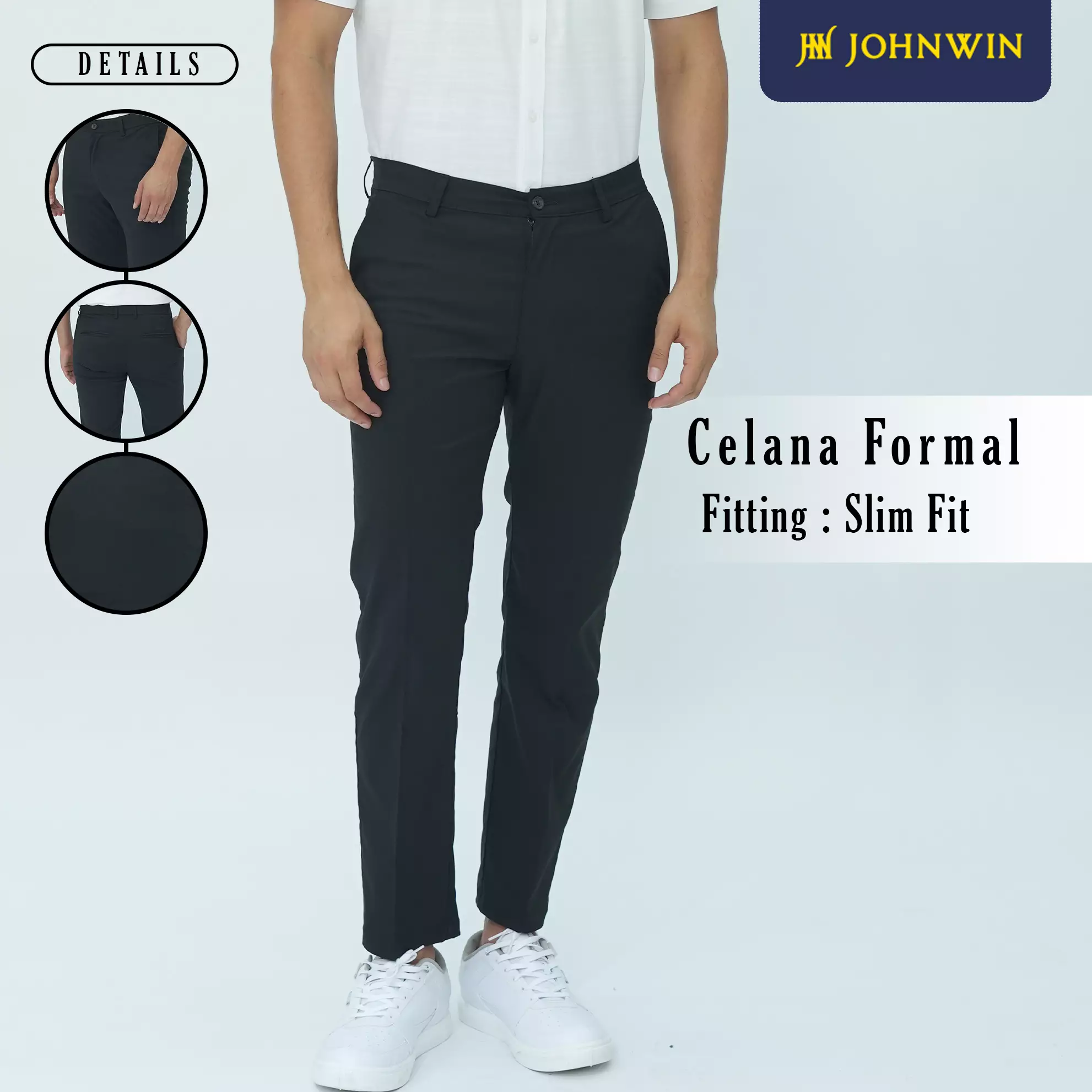 Johnwin - Celana Formal Sigma Ankle Pants - Celana Panjang Pria - Bahan Katun Polyester - Slim Fit - Hitam - F.1024.006.110.C