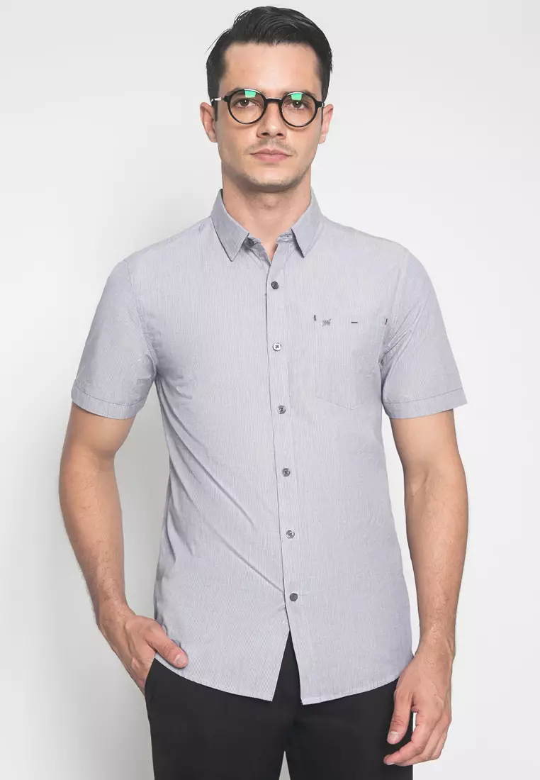 Johnwin - Kemeja Casual - Abu-Abu - Lengan Pendek - ASH.670.K880.829.C