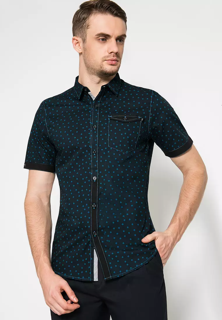 Johnwin - Kemeja Casual - Kemeja Lengan Pendek - Hitam Motif - ASH.670.K880.745.C-S/S