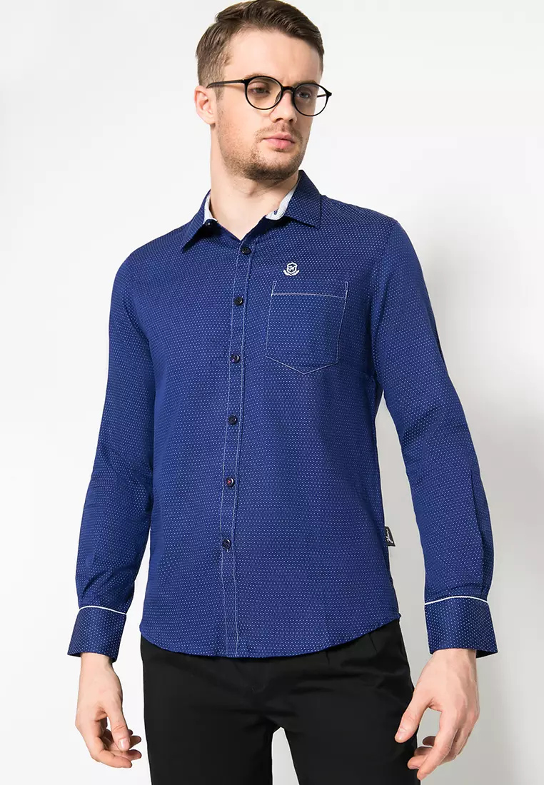Johnwin - Kemeja Casual - Kemeja Pria - Biru - Titik Putih - ASH.670.K871.670.C L/S