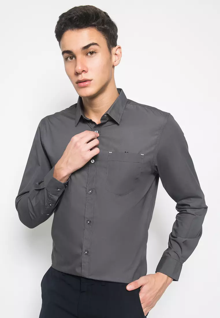 JohnwinJohnwin - Kemeja Casual - Kemeja Pria - Polos - Lengan Panjang - Abu - Slim Fit - ASH.670.K871.769.C378600.00183000.00