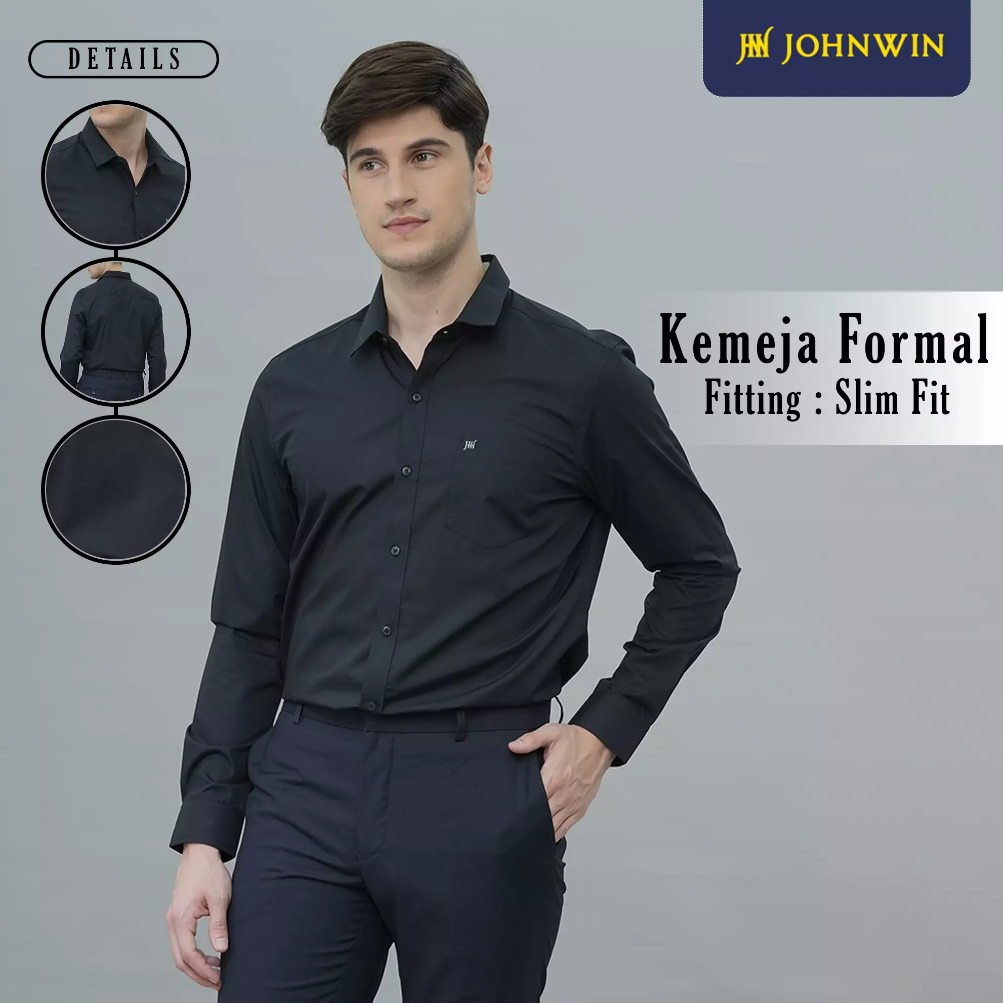 Johnwin - Kemeja Formal Oppulence - Kemeja Pria - Model Basic - Katun Knitting - Lengan Panjang - Slim Fit - Hitam - FSH.650.K395.982.C-L/S